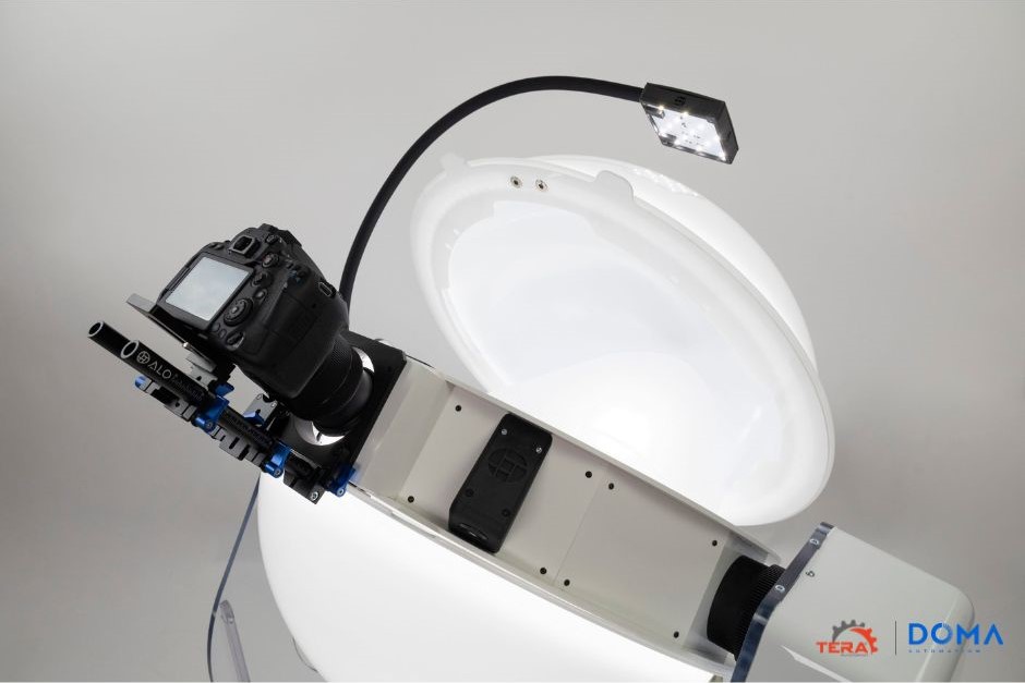 Per ottimizzare la fotografia di prodotto, ALO Photo Sphere utilizza una sfera che isola l'oggetto da fotografare dalle interferenze luminose esterne. Si crea quindi un ambiente neutro che consente un controllo preciso della luce e dell’inquadratura, garantendo scatti uniformi e di alta qualità.